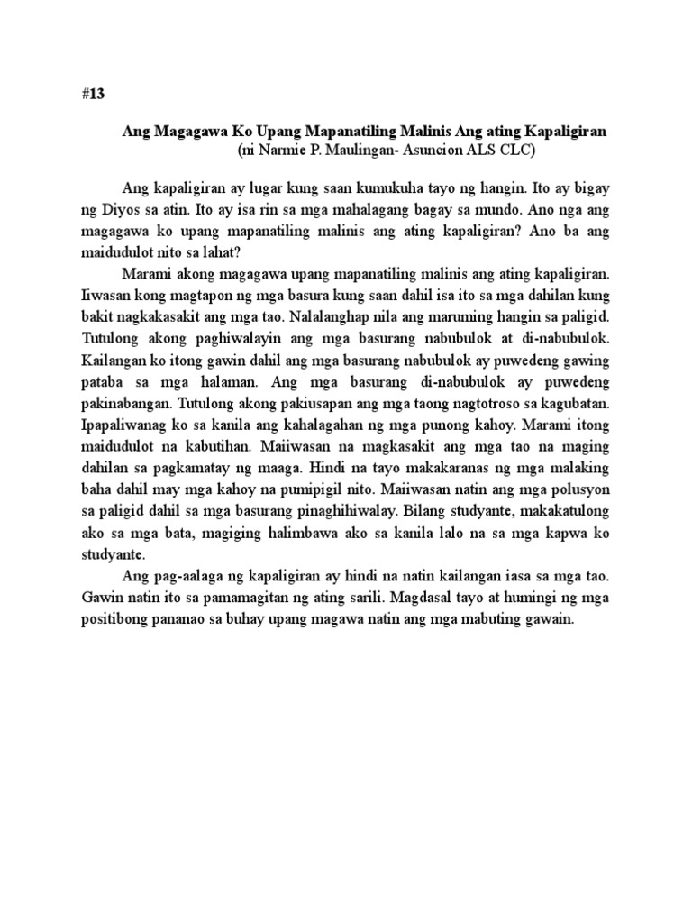 Ang Magagawa Ko Upang Mapanatiling Malinis Ang Ating Kapaligiran Pdf